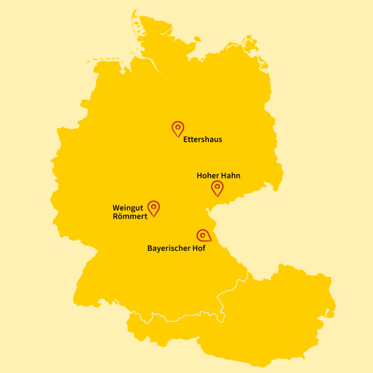 Unsere Häuser liegen in einigen der schönsten Urlaubsregionen Deutschlands. Sie finden uns zum Beispiel im Harz, im Erzgebirge, im Bayerischen Wald, oder im fränkischen Weinland.